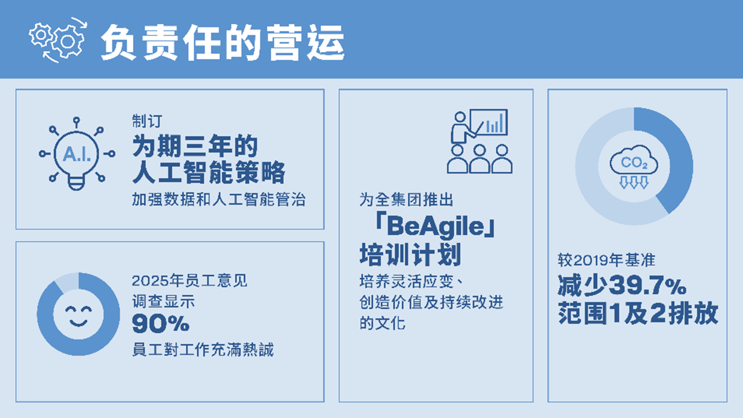 · 營(yíng)運(yùn)排放較2019年基準(zhǔn)減少39.7%,超越2025年的既定目標(biāo),為2030年實(shí)現(xiàn)凈零營(yíng)運(yùn)排放奠定基礎(chǔ)