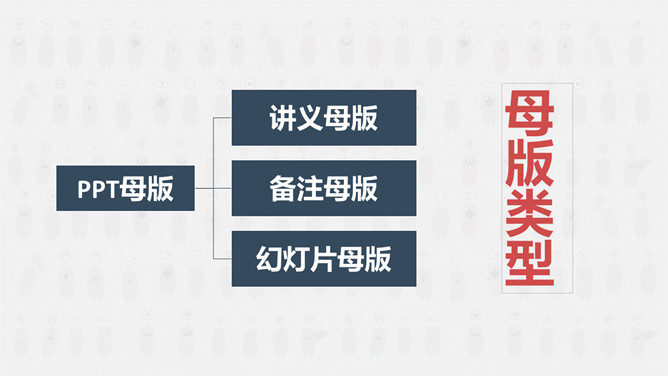PPT母版設置運用教程。一勞永逸:對幻燈片母版的更改,將應用于所有幻燈片頁面,PPT頁數越多版式越復雜,用母版越高效;母版中設置的版式,普通視圖中其他人無法意外刪除或編輯;版式里可以一鍵換母版。母版類型:講義母版;備注母版;幻燈片母版。講義母版&備注母版|通常用于打印PPT調整格式;幻燈片母版|旨在用更少的時間,批量快速建立精美PPT